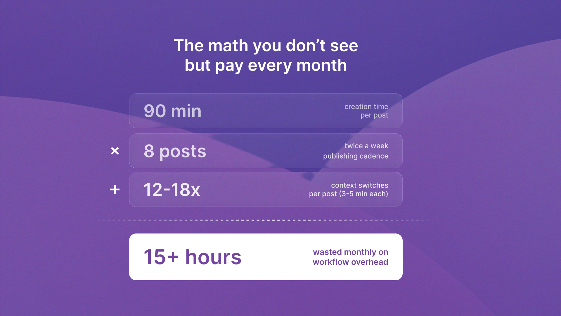 The typical LinkedIn workflow causes 4 to 5 context switches per post. You ideate in a notes app. You draft in ChatGPT. You edit in Google Docs. You schedule in Buffer. Then you manually copy and paste. Each switch introduces friction, decision fatigue, and opportunities to abandon the process mid-stream. This is the tool-switching tax, and it invisibly drains time while creating failure points at every transition.